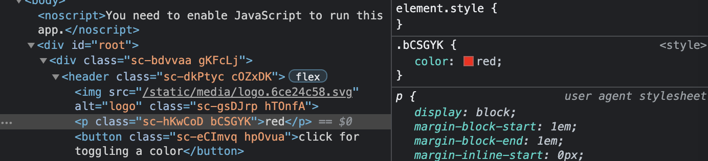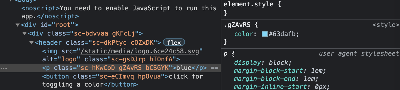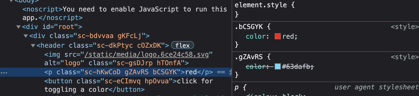color: ${(props) => (props.isRed ? 'red' : '#63dafb')};